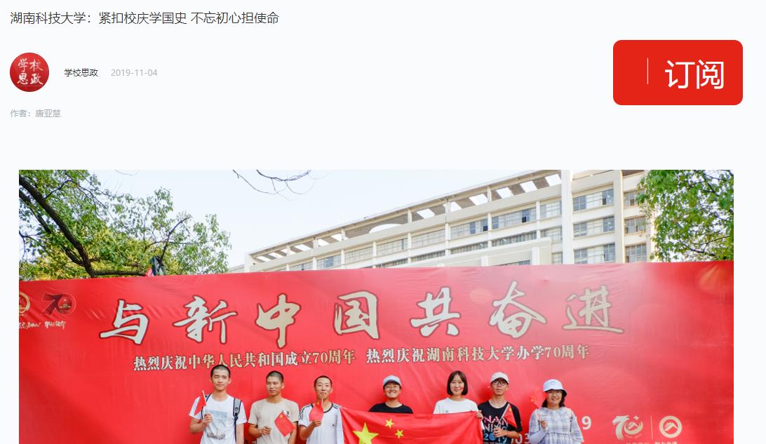 除了办学70周年创新发展大会,此前为“庆国庆、迎校庆”,学校拍摄《我和我的祖国》MV,把最美的歌声唱给祖国;开展“我和我的祖国”“青春告白祖国”“与国旗合影”等活动,实力为祖国70岁生日实力打Call;开展新生第一堂思政课宣讲,强化理论武装和思想引领;组织集中观看办学成果展,传承校史红色基因;举办系列座谈会,研讨创新发展……深化党员干部对于初心使命的认识。