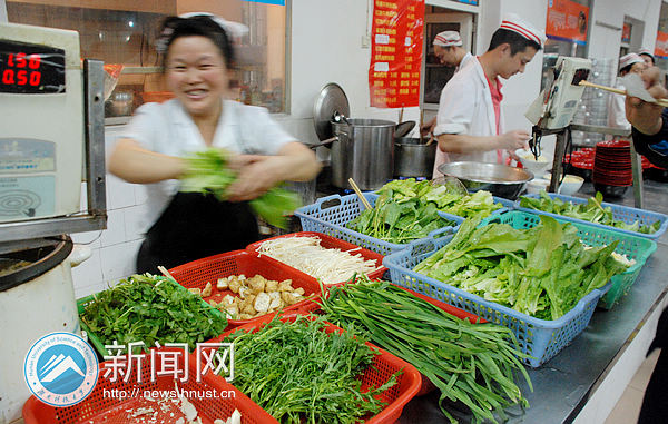 科大食府、学生之家、南区一食堂、南区四食堂……在南区的食堂里,烫菜成为了菜肴。无论你走进南区哪一个食堂,都会看到一个阿姨拿着筷子、勺子随时为你准备着。而在北区,这样的场景是不可能见到的。
