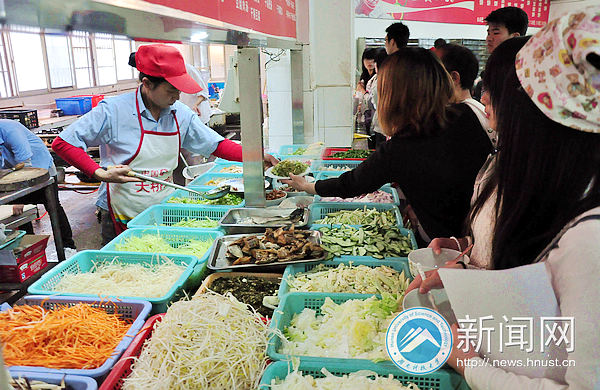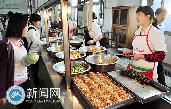 (经过别具特色的吆喝之后,“学生之家”的阿姨们打菜格外认真、仔细)