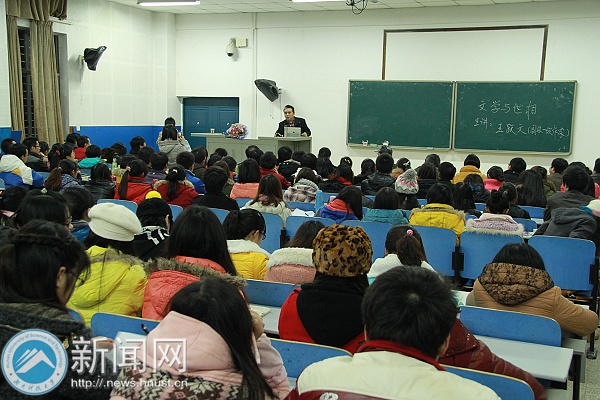 12月14日晚,湖南省作家协会执行主席、著名作家王跃文应人文学院邀请来到我校,在八教2—3做了主题为“文学与世相”的文学专题讲座。湘潭市作家协会副主席邹联安、楚荷、赵竹青、蒋鸣鸣,市文联副主席毛娟,市女子作家协会主席团全体成员,湖南科技大学人文学院相关老师及在校研究生、本科生三百多人济济一堂,共同聆听了这场精彩的文学讲座。人文学院副院长、现当代文学学科带头人彭在钦教授主持本场讲座。