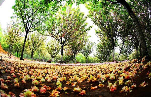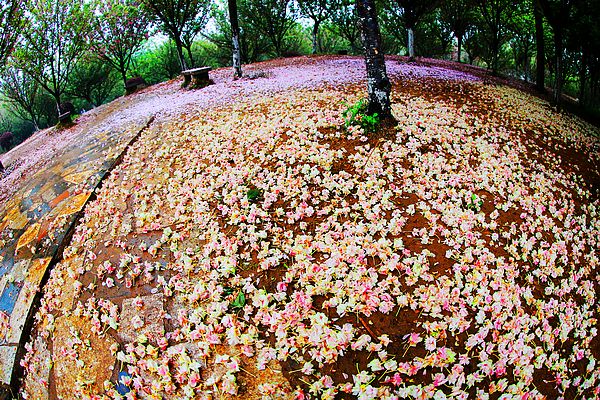 樱花盛开人潮涌动,满园樱花任你观赏;而当人潮退去,降下阵阵樱花雨。满地红花堆积,如蒲公英随风飘散,如粉红的雪花飘落般唯美、动人。
