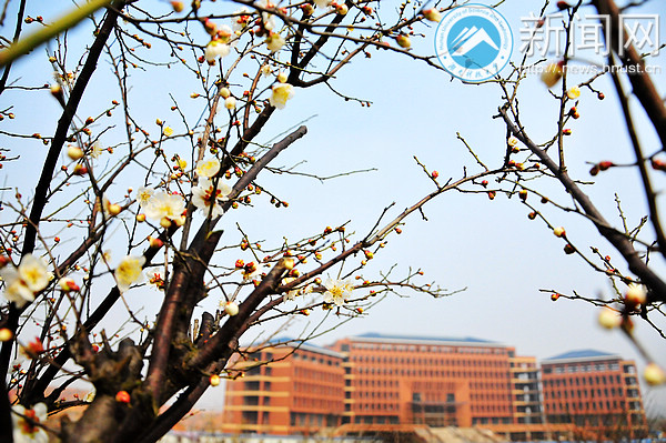 近日,我校梅花园的部分梅花在寒风中悄然绽放,