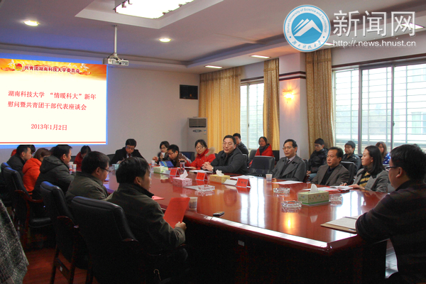 副校长朱川曲出席,学生工作处处长戴树根,校团委书记吴建军、副书记王婷,各学院团委书记、2011、2012年挂职团县(市、区)委副书记以及校团委全体老师与来自各学院的30名受助学生一起开展了一场“情暖科大”新年慰问暨共青团干部代表座谈会。