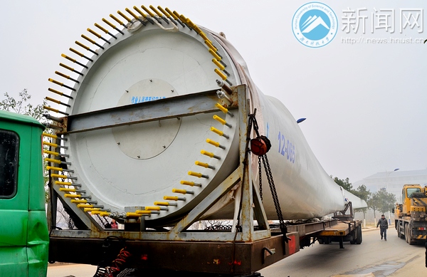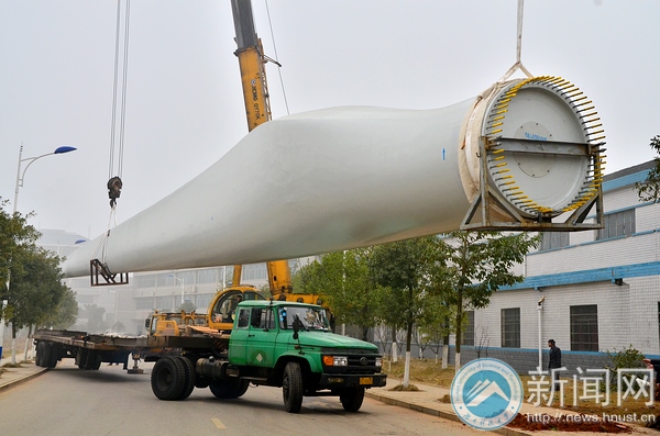 为了进一步推进我校在风电机组动力学分析、变桨距控制和风电机组叶片设计等领域的研究工作,加强产学研合作,江苏南通东泰新能源设备有限公司(湘电控股公司)赠送我校2.0MW/42.5m风力发电机风轮叶片,放置在学校新能源实验室内。