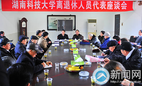 1月19日下午3:00,我校离退休老同志座谈会在招待所二楼会议室召开。校党委书记田银华、校长刘德顺、党委副书记刘建武、副校长李琳出席。校办、组织部、教务处、科研处、学科办、人事处、财务处、后勤处、离退休处负责人和31名离退休老同志代表参加了座谈会。座谈会由田银华主持。