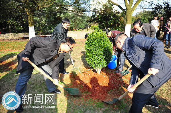 春光明媚,两棵树顺利到达科大。趁着下午阳光正好,校党委副书记、副校长刘建武,组织部、宣传部、团委等相关部门负责人,拿着铲锹和李兴华、杨飞将树种在了十教前坪。铁铲扬起又落下,让泥土牢牢地护住黄杨木的树根。杨飞提来水桶,给几天都没有喝水的树浇上了水。一旁的同学们不禁感叹,“这树的香味好不一样”。为了让黄杨木茁壮成长,大学生通讯社还领养了这两棵树。