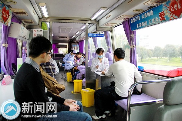 3月16日上午,潇湘学院志愿团联合我市中心血站在南校区美食广场前坪迎来了校园无偿献血活动的第一天。采血车旁的小圈子人群显得格外引人注目,不少同学前来咨询,志愿者们热情的进行解答。