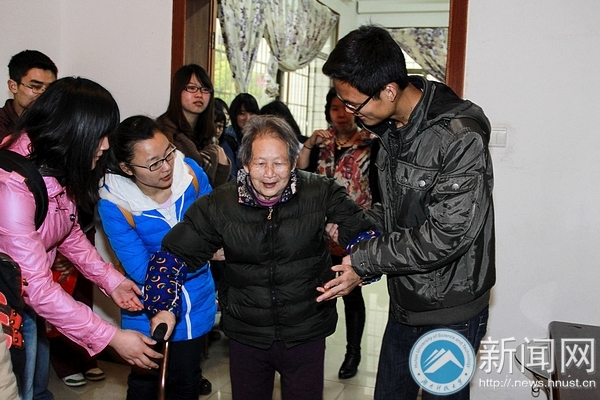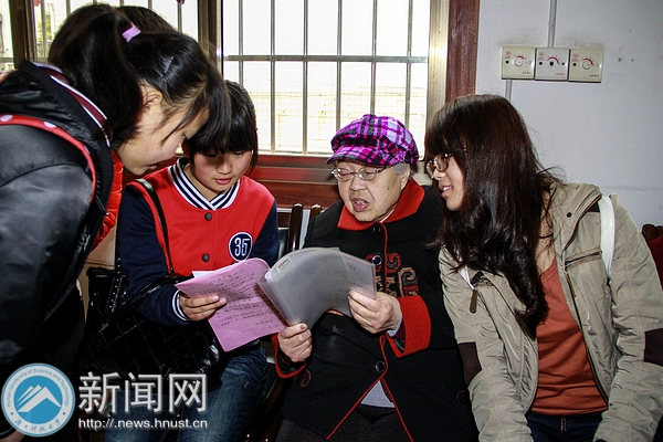雨下得越发急促,志愿者们扶着老人走进活动室,他们要献上热情的表演让爷爷奶奶们“暖”起来。为了让爷爷奶奶们更好地欣赏节目,大家可是颇费了一番心思:先是来了个普通话和湘潭话的“双语”主持;会唱歌的奶奶被邀为特别嘉宾,和同学们一起表演方言版《刘海砍樵》;一位面容慈祥的爷爷被歌声感染提起了兴致,他从怀里掏出一个记歌词的本子,戴上老花镜,唱起了《浏阳河》,志愿者们随着歌声一起帮爷爷打着拍子;敬老演负责人也和同学们一起上场,表演手语“感恩的心”……