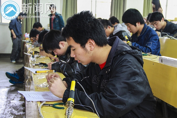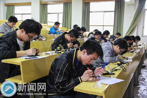检查实验器具安全后,选手们接过试题,开始构思如何在电路板上串联起各个元件。信息学院11级周奇峰完成光控频闪警示灯时,左手捏着锡丝,右手紧握长寿内热电铁烙,袅袅几股轻烟升起,电路板已铺排上线路。接上电源后,警示灯却没有闪动,他拿过试题重新审读要求,并不停修缮电路直到最后两分钟。“整个过程中由于原器件损坏而导致制作结果并不是十分理想,可我觉得努力过就好。”周奇峰略有遗憾地交上作品。