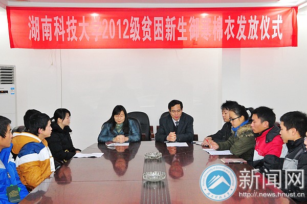 12月13日下午,我校2012级贫困新生御寒棉衣发放仪式在学生工作处会议室正式启动,副校长朱川曲出席仪式,学工处相关负责人与各学院分管资助工作的辅导员老师、贫困生代表一起参加了启动仪式。