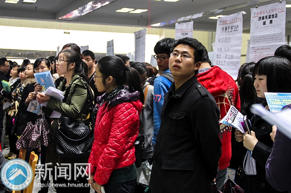 “我参加过学校组织的的多次实习活动,积累了丰富的实习经验,现在正在准备考英语专业八级证书……”外国语学院刘亚佳正认真地向招聘单位进行着自我介绍。她的周围是一群和她一样的毕业生。