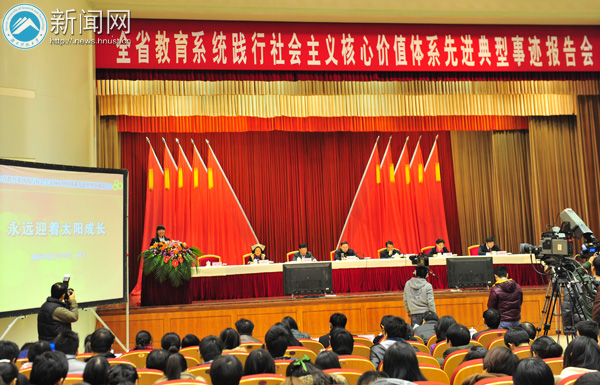 12月13日上午,湖南省委礼堂座无虚席,全省教育系统践行社会主义核心价值体系先进典型事迹首场报告会在这里隆重举行。我校学生何平作为全省教育系统先进典型代表之一在会上作报告。