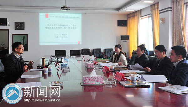 3月27日,湖南省委教育工委在我校组织对在潭部分高校主持的省高校校园文化精品项目和思政特色项目进行验收。专家组由湖南师大副校长周俊武,湖南师范大学学工部部长何旭娟,湘潭大学学工部部长陈立新,省委教育工委宣传部部长曾力勤以及工委宣传部干部崔恒源组成。这次验收的项目分别来自湖南科技大学、湖南工程学院、湖南电气职院、湖南城建职院等四所高校,共有五个项目,即湖南科技大学的《“节约型、廉洁型”学校建设及其育人机制构建》与《大学生思想政治教育创新与青年马克思主义者培养工程体系建设》,湖南工程学院《“魅力湖工”大学生周末广场文化活动》、湖南电气职院《职业院校校园文化与企业文化融合的探索与实践——以基于企业办学模式下的湖南电气学院为例》、湖南城建职院《强化五个文化建设,培育当代鲁班文化》。