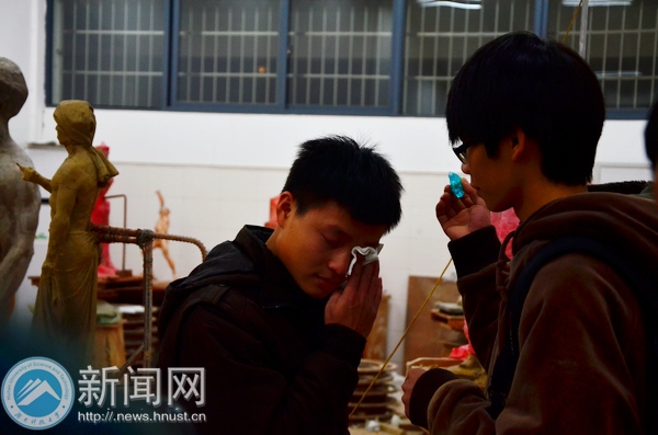 他是赖庆林,湖南科技大学艺术学院2008级雕塑系一班的学生,老师说他是雕塑专业能力最强的学生,但是他即将失明。