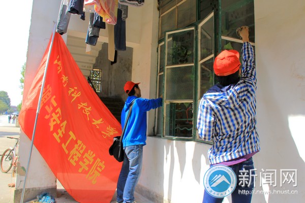 一帜红旗,一顶红帽,能源与安全工程学院志愿团的志愿者们走进了二区10栋宿舍楼。这里是现在正准备考研和找工作的学生宿舍,雷锋日里,这些志愿者特意前来为平时来不及收拾宿舍的学长们整理宿舍。