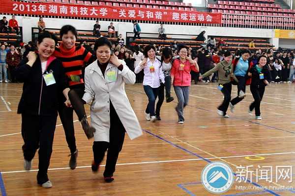 脱掉高跟鞋,穿上运动装,扎起马尾辫,3月8日,我校各学院和机关单位的女教职工在阳光灿烂下齐聚北区体育馆,参加由校工会组织的“关爱与和谐”趣味运动会,有的女职工甚至携带家属“助阵”。校长刘德顺,党委副书记、副校长刘建武,副校长李琳等校领导也来到大家中间,一起快乐运动。