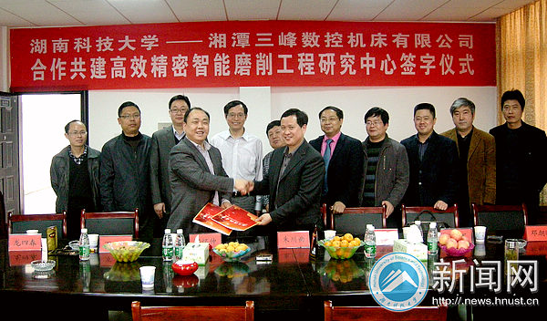 3月8日下午,我校与湘潭三峰数控机床有限公司合作共建高效精密智能磨削工程研究中心签字仪式在先进矿山装备教育部工程研究中心(以下简称工程中心)研发楼会议室举行。
