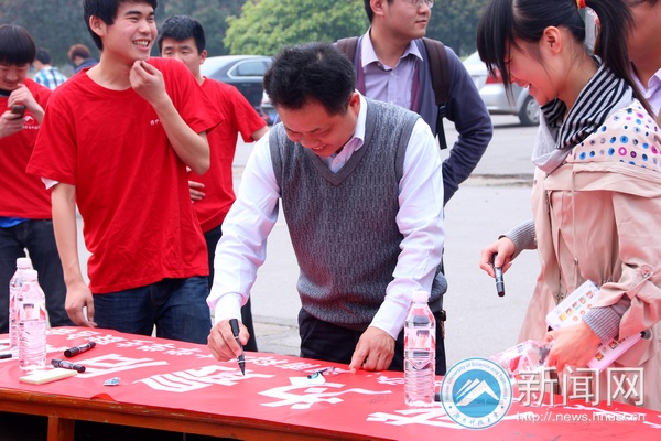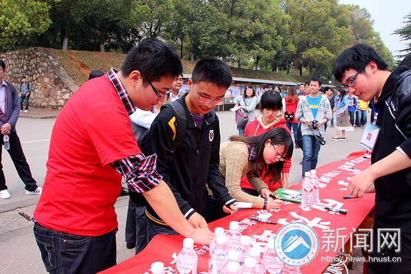 尽管天气闷热难耐,但大家仍纷纷围在横幅前一笔一划写下自己的节水宣言。“假如今天我们无水可用,世界将会不存在,包括爱。”一对情侣这样写到。11级管理学院的李倩男仔细将自己写好的便利贴贴到宣传板之后,还获赠一瓶纯净水。她对节约用水有自己的坚持:“看到别人浪费水就会忍不住去提醒。没有珍贵的水,就没有可爱的生命。”12级管理学院学生张晓琳说,参与这样的活动,至少可以唤醒很多人的节水意识,“至少今天这警醒了我”。