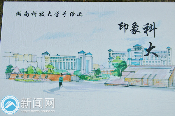 记者了解到,“印象科大”组图共有11张手绘图,首要标志便是“科大正校门”。此外还包括第一图书馆、俱乐部、梅花园、樱花园、商业街、明湖等场景。