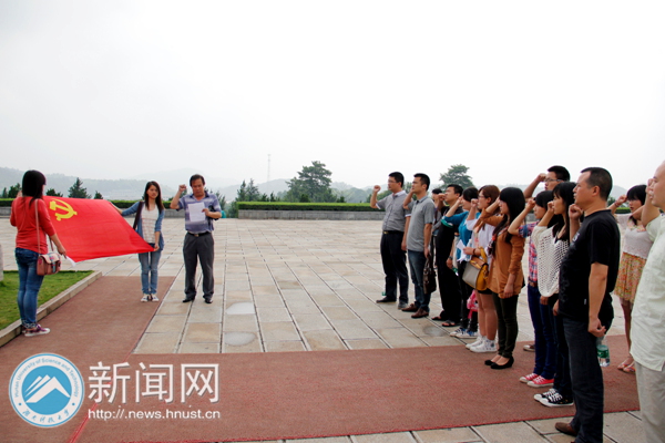 早晨9点,商学院的同学们和老师来到目的地。“我愿意加入中国共产党,拥护党的纲领,遵守党的章程,履行党员义务……”在铜像广场下,商学院的预备党员们在彭德怀的铜线下宣读入党誓词。虎门、铜像广场、德怀亭、德怀墓,处处彰显着红色情结。