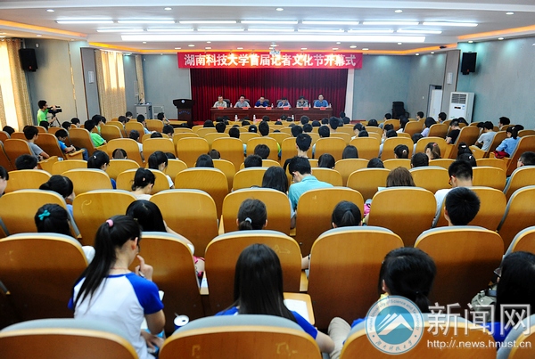 何频宣布首届记者文化节开幕。他对湘潭市各家媒体工作者的长期支持以及校领导的关心帮助表示感谢,坦言十年来一批又一批的学生记者对新闻事业的热情带给自己许多感动和力量。