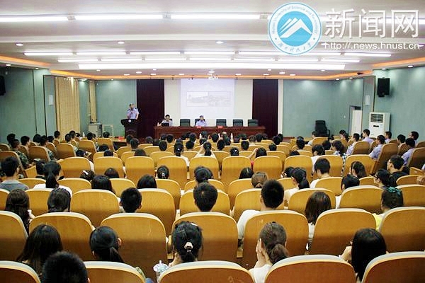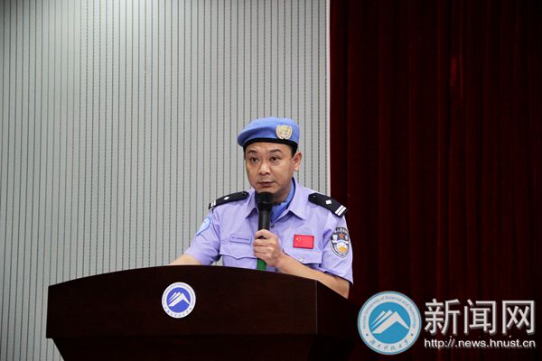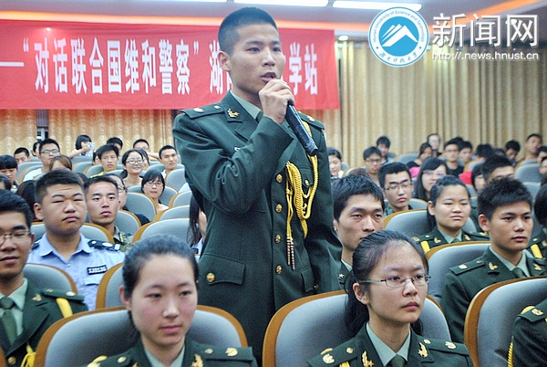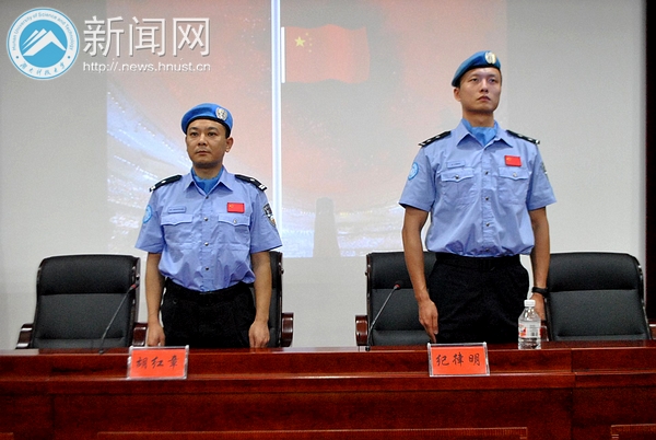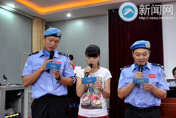 5月26日晚7点,大型校园情景互动访谈活动“对话联合国维和警察”于我校三教101顺利举行。曾在西非利比里亚执行一年维和任务的胡红章和纪律明分享了他们的维和故事和心路历程,向同学们传递和平,梦想和希望的力量。湘潭市公安局团委书记吴欣,公安局宣传科科长谢志斌等公安局领导及校团委沈智祥老师参加活动。此次活动吸引了包括我校国旗仪仗队、军训团和学生校卫队在内的200多名同学参加。 维和路上:困难和挑战并行 利比里亚是世界最贫困的国家之一,充满冲突,战乱频繁。胡红章和纪律明所在的湖南维和警队的日常工作就是对当地警察进行工作上的监督,指导和培训。头戴蓝色贝雷帽,老成持重的胡红章在《危险,原来如此之近》的演讲中谈到对当地人民愚昧迷信,滥用枪支,无视生命价值行为的震惊和触动。暴乱中暴徒围攻,丛林里泥坑冷弹,他曾多次与死神交臂:“战地维和就是奉献和牺牲,我们已经做好了牺牲的准备,但在一切扑面而来的时候,才会真实地体会到危险擦肩。” 和很多同事一样,高大帅气的纪律明患上过疟疾和伤寒,靠矿泉水加压缩饼干度过艰难的一个月。他感慨地说:“生活在和平国度里的热闹很难想象对贫穷和疾病的恐惧,体会对危险和动乱的不安心情。”他在利比里亚需要处理很多事务,“必须随时准备着。” 追梦途中:希望和坚持永远是力量 在利比里亚的街旁,纪律明看到了一支特殊的足球队:球员双手拄拐,守门员缺了双臂。“他们每个人都面带笑容。当时我觉得既感动又疑惑,为什么他们对幸福的要求如此之低?”后来他了解到玩足球的年轻人都是九年前战争的受害者,于是疑惑渐渐消失,“他们的笑容就是希望。” 纪律明认为大学生不仅要有强健的体魄,更要有承担社会责任的能力和勇气,而能力和勇气就是来源于梦想。纪律明说坚持是最重要的,“行者无疆,境由心生。梦想的道路注定不会好走,不要管别人的眼光,坚持,就应该有始有终。”通过不断提高英文水平和业务技能,他用六年的不懈坚持换来了今天的成就。胡红章笔耕不辍,带回上百万字的中英文文章,其维和经历纪实作品《蓝色贝雷帽》也即将出版。 纪律明和胡红章与同学们进行了问答互动并现场进行简单防身招式的教学。我校校卫队中队长黄勇在听完报告后说:“我们同样以警之名尽责捍卫科大校园安全,我们也有自己的梦想,总有一天会实现。” ” 本次报告会由湘潭市公安局政治部和校团委共同主办。
