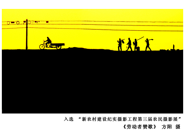 新农村建设纪实摄影工程由中国文学艺术界联合会、中国摄影家协会主办,农业部农村社会事业发展中心 、中国摄影展览中心承办,大赛旨在引导和鼓励广大摄影人通过农家乐、田园美;留守儿童与老人;走进都市的新农民等主题多角度记录农村和农民的巨大变化,展现新农村的田园美景,关注农村留守儿童生活、教育、家庭和身心成长等现实,聚焦农村留守老人社会福利、养老保障、文化生活等现状,关注在都市中劳动和生活的农民工群体,聚焦他们融入城市的生活篇章。