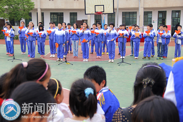 入队仪式和总结表彰后,刘友金向同学们表达了节日的祝贺并提出了殷切期望。初一(31)班的同学们一首热情四射的《逆战》唱响了文艺汇演的首声。独舞《茉莉情怀》、健美操《加油,宝贝》、歌曲联唱《小桥流水》……文艺汇演形式多样,孩子们当起主演,为观众们带来一场视听盛宴。