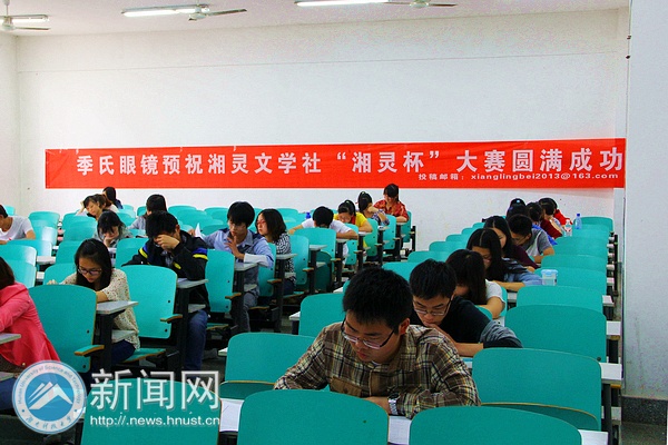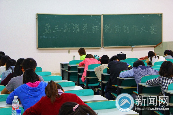 5月5日下午,第三届“湘灵杯”湘潭市高校文学创作大赛决赛在我校九教106教室开战,来自我校和湘潭大学、湖南工程学院等湘潭高校的46名选手在此舞文弄墨、一较高低。