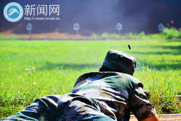 湘潭市军分区的靶场绿草地上,我校大学生军训团团员杨倩正按照教官的指令卧倒,她的左手往下托住枪身,想着“三点一线”的射击方法,确定已瞄准70米外的射击靶后,右手慢慢扣动扳机。