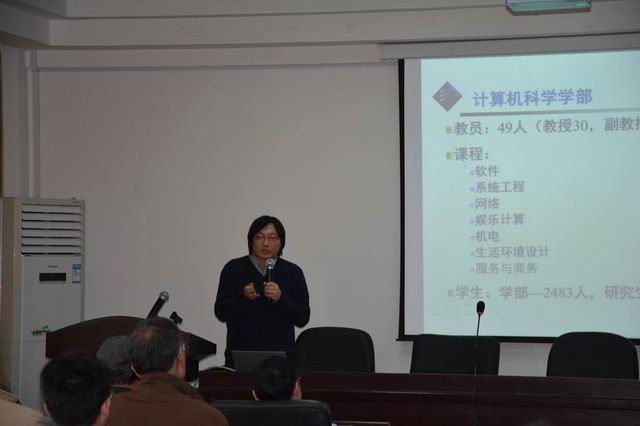 最后,吴敏教授作了《信息技术中若干前沿问题》的主题报告。报告以国际合作重大项目为背景,对冶金工业过程集成控制技术、现代鲁棒控制以及智能控制系统等领域的若干前沿问题进行了综合介绍。此外,吴敏教授还就如何开展高水平科研工作、两校人才培养和科研合作等问题进行了广泛的交流,并指出严格要求是提高人才培养质量的重要保证。