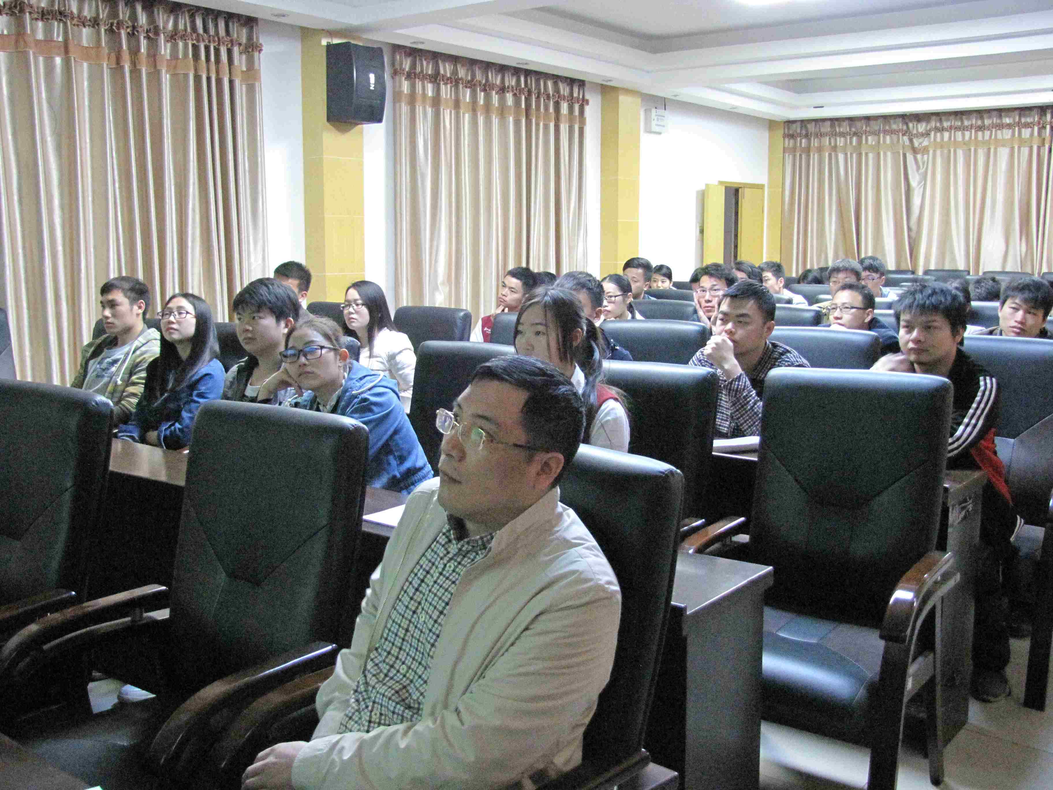 黄亚波详细介绍了大赛的历史、行业地位、大赛特点、参赛要求、赛事安排等具体事项;阐述了“设计生命建筑,展示真我风采”这一大赛主题和大赛价值理念,传递MDV正能量。与往年大赛相比,2015年度MDV预选赛首次对接绿色建筑评价标准,对参赛作品提出了一些比较具体的绿色建筑设计要求。在评审工作上,对于前几届大赛评审会当中的一些优秀做法和良好建议进行总结和规范,进一步提升评审的公平、公正性,向行业和社会展示MDV大赛的优秀风采。介绍了暖通湘军在往届大赛中获得最佳创意理念奖、金铅笔奖、银铅笔奖的优秀设计方案以及获奖设计师的成功经验;分析了普通设计方案与优秀设计方案的差异。鼓励同学们以获奖设计师为榜样,努力学习、不断创新,实现从普通到优秀、从优秀到卓越的提升。通过历届大赛获奖选手的案例勉励同学们秉承勤奋刻苦的精神,认真做好毕业设计,积极参加竞赛,力争获得奖励。