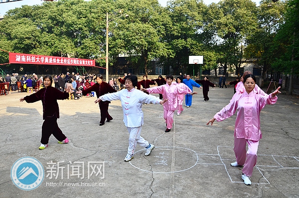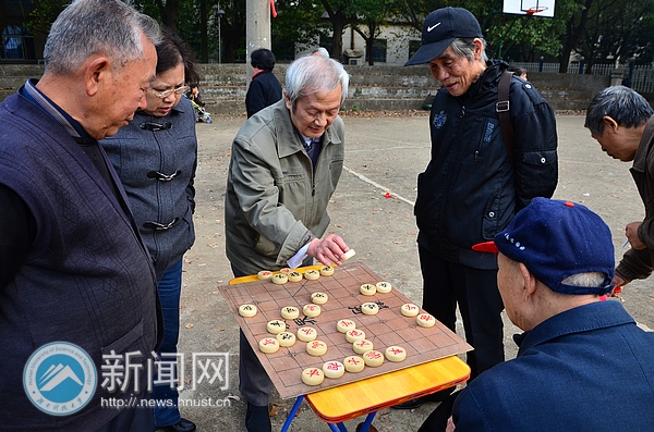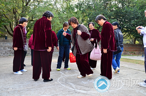 “你现在应该出剪刀!”“先这样跳一下,再用手拍一下地。”……阵阵笑声和着清脆的鸟语,阳光穿过香樟枝叶打在教职工篮球场。音响设备和桌椅都已经布置好,百余名离退休老人欢聚在此。“我们现在生活条件好了,但是子女不一定在身边,把老人们聚集在一起,开展体育活动,一来可以让我们这些退休的员工找到更多的生活乐趣;二来‘十八大’就要召开了,我们老年人也要‘老有所乐,老有所为’,我们也希望通过这样的方式向党表达我们的感恩之情。”江老师愉悦地说到。
