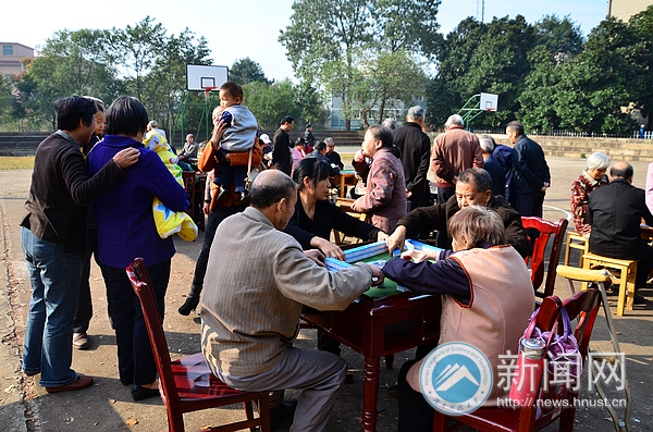 跟随着轻灵的配乐,掤、捋、挤、按、挒、进、退、定,老人们张弛有度、整齐有序地打起太极拳;“我在遥望,月亮之上……”踏着《月亮之上》的鲜明节奏跳起广场舞;围着方桌,来两圈桥牌;观众席不时传来“呱唧呱唧”的喝彩声……